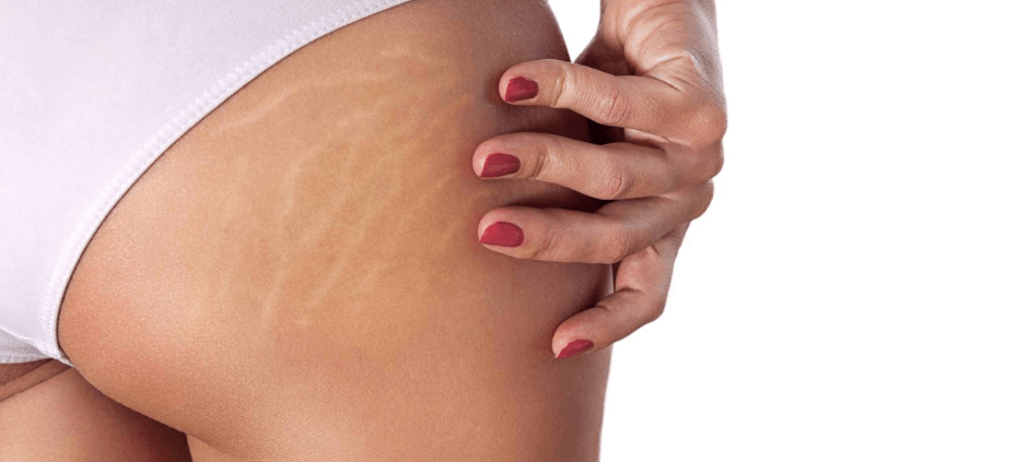 Cuando la piel se estira las fibras con menos elasticidad se rompen creando marcas a las que llamamos estrías. Las más comunes en el abdomen, pero también aparecen en muslos, en glúteos, caderas, en el busto y los brazos. Al principio las estrías son de color rosáceo, luego rojizo y finalmente blanco.
